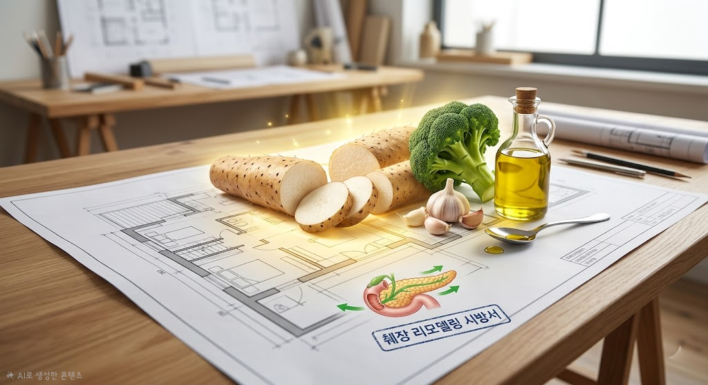 - 원칙 3: 거친 탄수화물로의 교체 (자재 변경) 정제 탄수화물은 췌장을 녹초로 만듭니다. 현미나 잡곡 같은 거친 자재를 써야 췌장이 여유롭게 인슐린을 조절합니다.