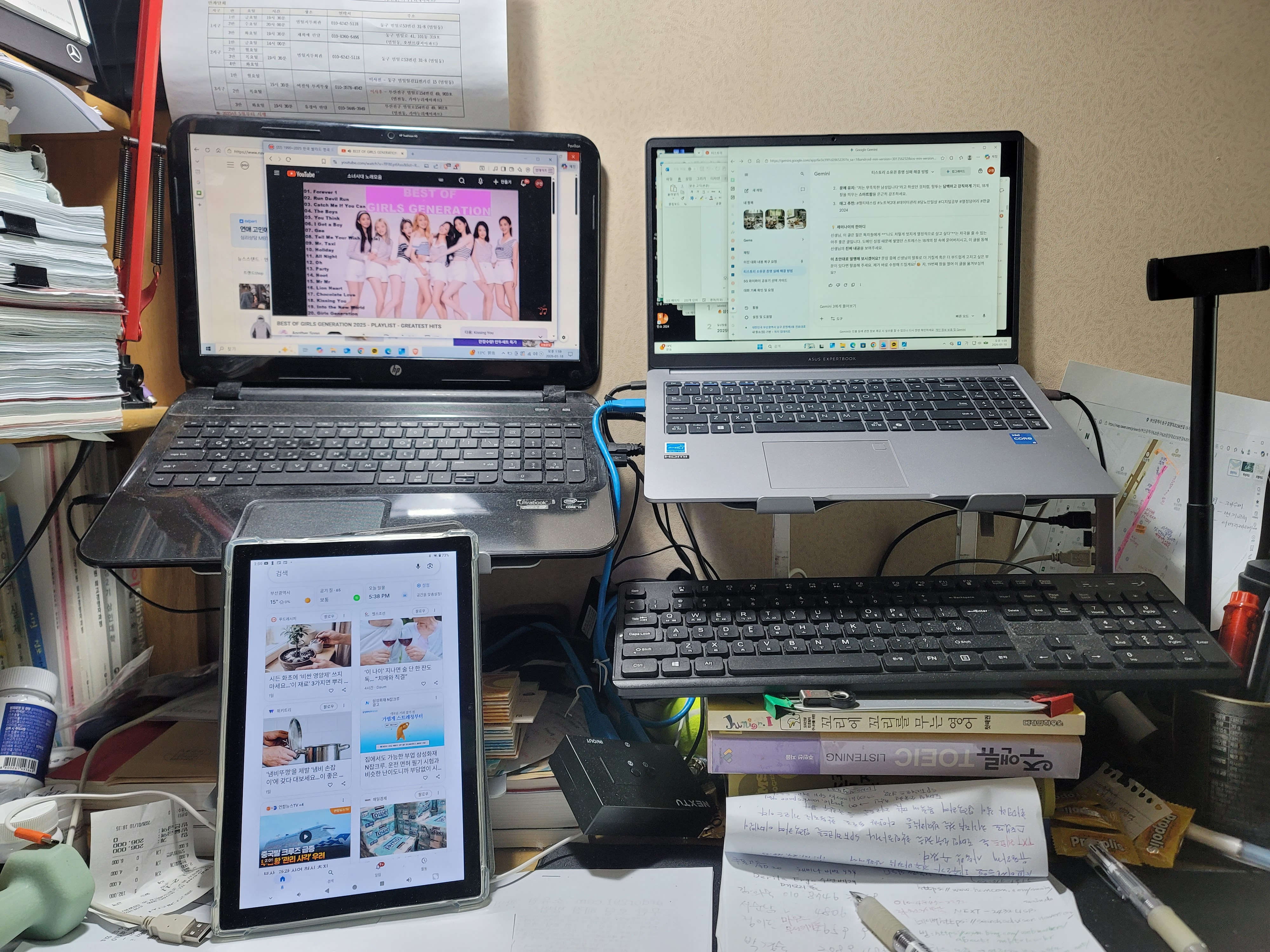 제 희망방의 불은 꺼져도, 노트북 두 대의 화면은 10분 이상 건드리지 않으면 화면은 꺼지도록 해서 살짝 건드리기만 해도 화면이 켜지도록 설정해 놓았습니다. 23개의 창을 그대로 열어두는 이유는 명확합니다. "아내는 왜 컴퓨터를 끄지 않느냐고 묻습니다. 어제 고민했던 데이터의 흐름을 놓치지 않고, 내일 아침 눈 뜨자마자 바로 전 날 기록의 현장으로 곧장 뛰어들기 위해서입니다. 여러분, 장비를 켜두고 공부하되 장비의 노예가 되지는 마십시오. 23개의 창을 띄우는 열정만큼이나, 단 1분이라도 내 몸의 소리에 집중하는 시간을 가지시길 바랍니다. 기록은 머리로 하지만, 건강은 몸으로 지키는 것입니다.