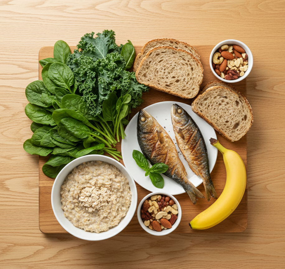 추천 식품: 바나나, 아보카도, 시금치, 감자, 고구마